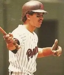 Benito Santiago Rivera (born March 9, 1965) is a Puerto Rican former professional baseball catcher who played 20 seasons in Major League Baseball (MLB), most prominently as a member of the San Diego Padres.[1] Considered the premier catcher in the National League (NL), he was a four-time Silver Slugger Award winner, a three-time Gold Glove Award winner, as well as a five-time All-Star.[1][2] In 2015, Santiago was inducted into the Padres Hall of Fame.[3]