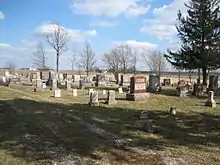 The cemetery was established soon after the original meeting house was built in 1859. Burial grounds were typical accompaniments to Friends meeting houses. While burial grounds were encouraged in the 1825 Quaker Rules of Discipline, the burial of non-Quakers in Quaker cemeteries was not.[2] To satisfy this rule burials at Benjaminville were separated into two separate sections to allow an area for non-Quakers.[2][4] A newer section contains a mix of Quaker and non-Quaker descendants of those originally buried there.