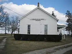 The Benjaminville Friends Meeting House is a particularly well-preserved example of a Quaker meeting house. For several years after 1874 the building was the focus of settlement in Benjaminville, a town one author described as "one of the strongest settlements of Friends that is to be found anywhere in the state" in 1879.[2] The structure is of historical and architectural significance.[2] As an example of the meeting house style used by the Society of Friends, the Benjaminville building is representative of an architectural type that remained virtually unchanged from the colonial American period through the 19th century.[2] The Benjaminville Friends Meeting House and its burial ground were listed on the U.S. National Register of Historic Places on December 13, 1983.[1]