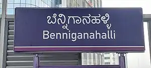 Benniganahalli is an elevated metro station on the east-west Purple Line of Bengaluru's Namma Metro transit system. In its vicinity are the Tin Factory Junction leading towards Baiyappanahalli, the Benniganahalli Lake, and the Tin Factory Bus Stop.[1][2] It was opened to the public on 9 October 2023 without any inauguration ceremony.[3][4]