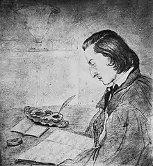 At first the composer titled the work Variantes, but the title was altered for publication to the current Berceuse, "berceuse" literally meaning "Cradle song".[3][4] It was first published by Jean-Racine Meissonnier of Paris in 1844 and was dedicated to Élise Gavard (1824–1900), saying on the title page: "Berceuse / pour le piano / dédié à / Mademoiselle Élise Gavard / par / F. CHOPIN."[2] The first publication in England was by Wessel & Co. in London on 22 June 1845, and the first publication in Germany was by Breitkopf & Härtel in Leipzig in July 1845.[2]