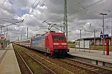 Bergen auf Rügen (German: Bahnhof Bergen auf Rügen) is a railway station in the town of Bergen auf Rügen, Mecklenburg-Vorpommern, Germany. The station lies on the Stralsund-Sassnitz railway and Bergen auf Rügen–Lauterbach Mole railway and was opened in 1883. The train services are operated by Deutsche Bahn Fernverkehr, Ostdeutsche Eisenbahn GmbH and Pressnitztalbahn. The narrow gauge line to Altenkirchen was closed in 1970.