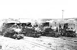 ![]() Kalgoorlie and Boulder Firewood Co.'s woodline locomotives Kate, Lily, Anie, and Mary, at Beria, c. 1910 | |