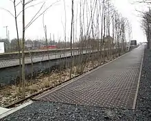 On 18 October 1991 a monument was inaugurated at the ramp leading to the former freight yard. The memorial includes silhouettes etched into a concrete wall, designed by Polish artist Karol Broniatowski.[2]