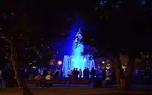 In the rest territory of the park there are two fountains. The main fountain, which is situated in the centre of Bernardine garden, works all the day at weekends in a warm period of the year. On work days the fountain works only from 9 pm to 10 pm as a light and music show. Also there is a rockery, a carousel, a playing ground for children, a giant chessboard, and checkers and chess tables. In a warm period of the year one can enjoy different expositions of sculptures.[3]