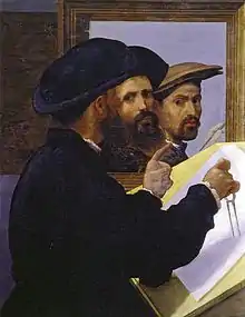 Portrait of an architect with a self-portrait of Bernardo Licinio in the background (ca. 1520-1530S), Martin von Wagner Museum