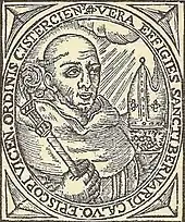 Bernat brought material aid to the sieges of Burriana and Valencia. When the latter fell to the forces of James I of Aragon, Bernard and his troops joined the rest for a celebratory first Mass in the central mosque of the city. He received many grants of land in the Kingdom of Valencia, which he visited a second time in 1242. Still a jurist, he helped to publish the Valencian laws, the so-called Furs of Valencia, before his death at Vich in 1243. He was buried in the Cathedral of Vic.[1] In 1260 he was beatified by Pope Alexander IV and on 26 September 1710 he was canonised by Pope Clement XI. The Cistercians celebrate his feast day is on 24 October; the diocese of Vich on 26 October.[2] He is usually represented as a bishop in a Cistercian habit.