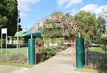 The location of the town was formerly swamp land. The unfavourable location was chosen as the mail run from Corowa to Murray Hut ran through Berrigan on much the same location as the present Riverina Highway, and the road from Jerilderie lies on the same route now as it did back then.[4] The Berrigan Post Office opened on 11 May 1884.[5]