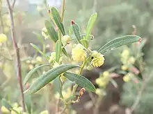Bertya gummifera[4] is a sticky shrub[4] in the family Euphorbiaceae, endemic to New South Wales.[4][5][6] It grows in woodland and often in sandstone areas.[4] It flowers in spring.[4]