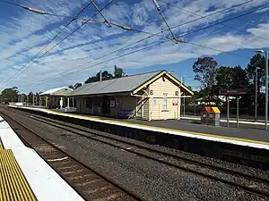 Bethania station opened in July 1885 as Kara Kara. In September that year, it became a junction station when the Beaudesert railway line opened and was renamed Bethania Junction. It resumed its original name in 1943. Refreshment rooms opened in 1908 and closed in 1964.[1][2] On 21 April 1992, a third platform opened as part of the duplication of the line.[3]