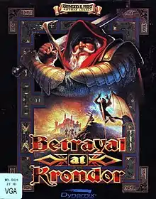 Betrayal at Krondor is an MS-DOS-based role-playing video game developed by Dynamix and released by Sierra On-Line in the summer of 1993. Betrayal at Krondor takes place largely in Midkemia, the fantasy world developed by Raymond E. Feist in his Riftwar novels. The game is designed to resemble a book, separated into chapters and narrated in the third-person with a quick-save bookmark feature.