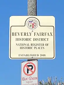 Beverly Fairfax Historic District sign from the National Register of Historic Places