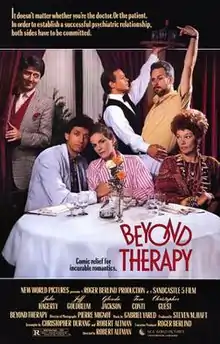 Beyond Therapy is a 1987 American comedy film written and directed by Robert Altman, based on the 1981 play of the same name by Christopher Durang. It stars Julie Hagerty, Jeff Goldblum, Glenda Jackson, Tom Conti, and Christopher Guest.