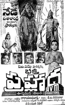 Bhakta Prahlada (transl.Prahlada, the Devotee) is a 1967 Indian Telugu-language Hindu mythological film directed by Chitrapu Narayana Rao based on a script by D. V. Narasa Raju. It stars S. V. Ranga Rao and Anjali Devi. Roja Ramani, in her film debut, plays the title character. Bhakta Prahlada is produced on the AVM Productions banner by A. V. Meiyappan and his sons, M. Murugan, M. Kumaran and M. Saravanan. The film is based on the legend of Prahlada, a character in Bhagavata Purana known for his devotion to the Hindu god Vishnu.