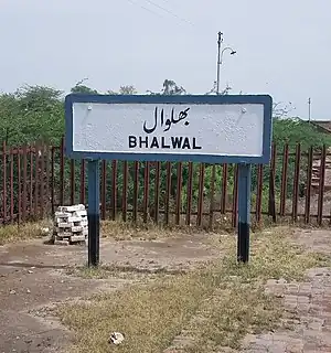 Bhalwal Railway Station (Urdu: بھلوال ریلوے اسٹیشن) is located at Bhalwal, Pakistan.
