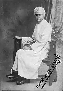 Bhawani Dayal later Bhawani Dayal Sanyasi (10 September 1892 – 9 May 1950) was a wealthy South African of Indian descent, an activist for Indians in South Africa and an editor of various India-related newsletters such as the Pravasi. He collaborated with Mohandas Gandhi, and represented the South African Indians at the Indian National Congress while also being active in the Arya Samaj, the propagation of the Hindi language and in other Indian diaspora movements of the time. He was accepted as a person who renounced worldly pleasures as a sanyasi giving him the later name and the prefix Swami.