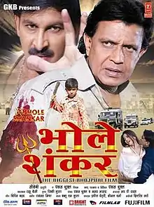 Bhole Shankar is a 2008 Indian Bhojpuri language masala film directed by Pankaj Shukla and produced by Gulshan Bhatia, starring Mithun Chakraborty and Manoj Tiwari. The film broke the standing record for biggest opening for a Bhojpuri film.[1] It is the first Bhojpuri film of Mithun Chakraborty and Monalisa.[2][3]