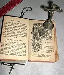 The first vernacular Bibles to enter into use in Slovakia were in Czech, which came to be used among Slovak Protestants.[2] In response the Catholic church arranged for the Camaldolese Benedictines at Červený Kláštor monastery to produce a Catholic Slovak Bible in the 1750s. This translation is accredited to Romuald Hadbavný.[3][4][5]