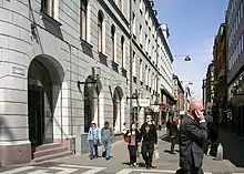 The street is a well-known shopping street with many luxurious brand stores and some of the highest rent levels for retail in Stockholm.
