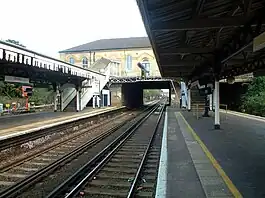 Bickley railway station is on the Chatham Main Line in England, serving the town of Bickley in the London Borough of Bromley, south-east London. It is 11 miles 76 chains (19.2 km) down the line from London Victoria and is situated between Bromley South and St Mary Cray on the main line. Southeastern trains branch from the main line south of Bickley and run to Orpington via Petts Wood. Thameslink services run either via Petts Wood or St Mary Cray on the main line.