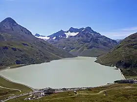 The Silvetta reservoir stands at exactly the same elevation as the pass and is the highest of the Ill power plant group. The Ill has its source south of the pass, close to which it would occasionally change its path and instead of heading west towards the Rhine, it would sometimes flow eastwards into the Inn. The reservoir brought this to an end; not only does it accumulate water from the Ill, but its two dams regulate the direction of outflow.