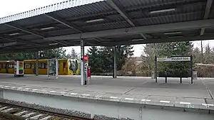 Biesdorf-Süd is a surface level Berlin U-Bahn station located on the U5 line of the U-Bahn Berlin subway in the neighborhood of Biesdorf in Berlin, Germany. The station opened on 1 July, 1988. After Tierpark, It comes above ground. The next station is Elsterwerdaer Platz.[1] North of the U-Bahn station is the Biesdorfer Baggersee.