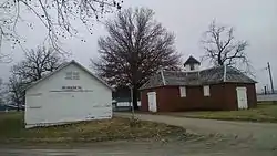 The Big 4 Fair Art Hall, also known as Hollenbeck Hall, is a historic building located in the Wapello County Fairgrounds in Eldon, Iowa, United States. The single-story brick structure was built in 1911, replacing an older building that had been destroyed in a fire. It is thought to be the oldest original brick building on a fairgrounds in the state.[2] The building has four wings that were devoted to the four Iowa counties in the Big 4 Fair Association, Wapello, Davis (South), Jefferson (east), and Van Buren (southeast). People from each county would display their produce, grain, and arts and crafts in their county's wing. During other times of the year, the building was used for meetings and entertainment.
