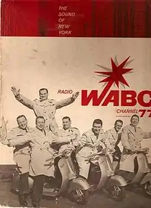 The WABC Swinging Seven on Vespa cycles in 1960 (from left): Jack Carney, Chuck Dunaway, Herb Oscar Anderson (above), Bill Owen, Scott Muni, Charlie Greer, and Farrell Smith.