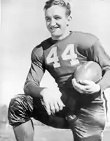William Frank Hillenbrand (March 29, 1922 – July 17, 1994) was an American professional football halfback and return specialist who played professionally in the All-America Football Conference (AAFC). He attended Indiana University, where he played for the Indiana Hoosiers. In 1942, he was a consensus All-American and was drafted by the New York Giants in the 1st round (6th pick overall) in the 1944 NFL Draft. He played three seasons in the AAFC from 1946 to 1948 for the Chicago Rockets and Baltimore Colts. He was a versatile player, who scored 186 points gained over 4,000 all-purpose yards in three years of professional football—1,987 receiving, 1,042 on kickoff returns, 889 rushing, and 612 on punt returns.[1] He also had a 48-yard interception return, a 96-yard kickoff return, and an 89-yard punt return. In 1948, his total of 970 receiving yards, and his average of 11.2 yards per touch was the best in the AAFC, and his total of 2,067 all-purpose yards was second best in the league.[1]