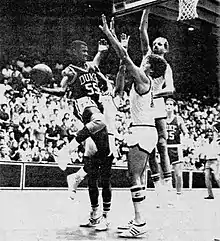 King making a rainbow shot in 1986