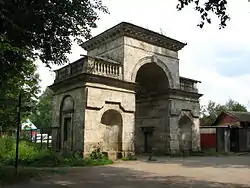 The Birch Gate (Berezoviye Gate, Russian: Берёзовые ворота) is a stone gate located on the eastern border of the Palace Park, the grounds of Gatchina Palace, in Gatchina, Leningrad Oblast, Russia.[1] It is nearby the Birch House (Березовый домик).[2] The facility was built from 1795 to 1798 by Giovanni Visconti according to the design of famous architect Vincenzo Brenna.[3] The Birch Gate is a part of the Historic Centre of Saint Petersburg and Related Groups of Monuments, a UNESCO World Heritage Site.[1]