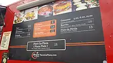 The Mexican[1] restaurant Birrieria La Plaza (BLP) operates from a red food cart on Stark Street in southeast Portland, in the parking lot of a discount store.[2] The menu focuses on birria and also includes braised beef and vampiros.[3] The Plaza Plate includes a quesadilla, taco, mulita, tostada, and a cup of consommé.[4]