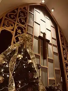 In 1941, The headmaster the Rt. Rev. Edward Bidwell left to become the Assistant Bishop of Canterbury and the Bishop of Ontario. In 1955, the 18th Governor General of Canada the Rt. Hon. Vincent Massey inspected the BCS cadet corps. In 1958 the school gym/ballroom was consecrated as St.Martin's Chapel by order of the Lord Bishop of Québec, The Rt. Reverend Philip Carrington and BCS students no longer used the chapel at Bishop's University.[5] An organ was installed behind the Cross in 1958. A stained glass window was given to BCS during the closing ceremony of St. Helen's School, Dunham, Québec. It is now installed at the top of the staircase to the chapel. BCS has grown more secular entering into the 21st century.