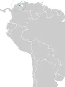 The nominate subspecies of black-fronted wood quail is found in the Sierra Nevada de Santa Marta of northeastern Colombia. O. a. variegatus is found at the northern end of Colombia's eastern Andes. O. a. navai is found in Serranía del Perijá, which straddles the Colombia-Venezuela border. The species inhabits the floor of tropical and subtropical montane forest, usually at elevations between 1,200 and 3,100 m (3,900 and 10,200 ft) but as low as 700 m (2,300 ft) in the Sierra Nevada de Santa Marta.[7]