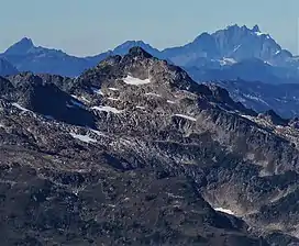 Glacier Peak (upper left) and Black Mountain (centered) from the west