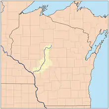 The Black River is a river in west-central Wisconsin and tributary of the Mississippi River. The river is approximately 190 miles (310 km) long.[3] During the 19th century, pine logs were rafted down the Black, heading for sawmills at La Crosse and points beyond.