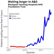 - ↑ "Patients treated in hallways at Blackpool A&E". Lancashire Evening Post. 18 April 2016. Retrieved 3 May 2016.