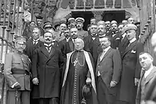 In 1917 Morte was among co-authors of the motion which produced formal and official dedication of Diputación Foral to the Sacred Heart of Jesus;[64] as the period was marked by growing secularism and anti-religious violence, the act stood out as a demonstration or religious conservatism prevailing in Navarre. The same year Morte initiated the motion[65] which eventually produced the call for a so-called reintegración foral, addressed to the central Madrid government.[66] The self-government demanded that traditional historical legal establishments, abolished in course of the 19th century as part of the homogenization process, be restored. Today this motion is viewed by some scholars as a step towards revindication of traditional Basque rights,[67] embodied in separate provincial regulations.[68]