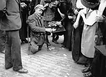 A war amputee selling bleuets on the Champs-Élysées, 4 July 1919.