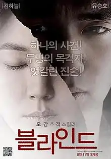 Blind (Korean: 블라인드; RR: Beulraindeu) is a 2011 South Korean crime thriller film directed by Ahn Sang-hoon with screenplay by Choi Min-seok which won the "Hit By Pitch" project fair held by the Korean Movie Producers Guild in 2009. It stars Kim Ha-neul and Yoo Seung-ho. Kim received Best Actress honors at the 48th Grand Bell Awards and the 32nd Blue Dragon Film Awards for her performance.[1][2][3]