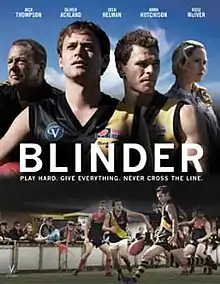Blinder is a 2013 Australian sports drama film directed by Richard Gray and starring Oliver Ackland, Rose McIver, Anna Hutchison and Jack Thompson. The film is an Australian rules football drama set predominantly in Torquay, Victoria. The film is about Tom Dunn, an aspiring football star who fled Australia following a scandal. Dunn returns to Australia to restore his reputation.