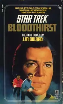 Bloodthirst is a science fiction novel by American author Jeanne Kalogridis (writing as J.M. Dillard), part of the Star Trek: The Original Series franchise. It was published in December 1987 by Pocket Books.[1] The novel's story focuses on a manmade virus which causes its victims to suffer many of the characteristics of vampires, including light sensitivity and a thirst for blood.
