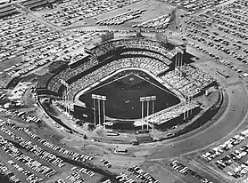 In 1953, Bloomington changed from a township to a village form of government. This more professional approach to government was accompanied by open council meetings, land use plans, and published budgets. The effects of this new form of government began immediately, first with the formation of the city police department (at a cost of $2 per taxpayer) and then with the first parkland acquisition. Both Bush Lake Beach and Moir Park were established at a cost of one dollar to each residence. Today, about 1/3 of the city's land area is devoted to city and regional parks, playgrounds, and open space.[17] In 1956, the first city land-use plan was initiated with the construction of Interstate 35W and Metropolitan Stadium.