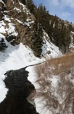 The headwaters of Blue Creek in Blue Creek Canyon along U.S. Highway 50 in Gunnison County, Colorado
