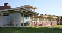 Land was added in 1955 and 1961, at which point the name was changed to Blue Mounds State Park. More lands were authorized in 1963 and 1965 to include the whole of Blue Mound and property to either side. The state bought Frederick Manfred's house in 1972 to turn into an interpretive center, although they let him live there for three more years. Because the house was at the southern end of the mound and the developed part of the park was at the north end, a connecting road was surveyed across the top. Local conservationists argued the state out of this plan several times in the 1970s, citing the impact to the environment atop the mound. In 1986 a road was paved from the house south to a county highway instead, so that visitors to the interpretive center must hike in from the north or drive around the edge of the park to the south entrance.[8]
