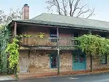 The Blue Wing Inn in Sonoma, California, was one of the first hotels built in the state north of San Francisco.[2][3] What began as the first property transfer in the new Pueblo de Sonoma and a simple adobe residence transformed with time and the addition of more rooms into a storied landmark. During the California Gold Rush it was used by miners going to and from the gold fields and by the U.S. Army soldiers stationed in Sonoma. After many years, owners and uses - the Blue Wing Inn was purchased by the State of California in 1968 and is currently under study for its best use as part of Sonoma State Historic Park.[4]