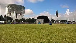 Setting up the 2016 festival. Bluedot takes place against the backdrop of the Lovell Telescope at Jodrell Bank Observatory (JBO) in Cheshire.