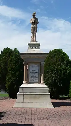 Boer War Memorial is a heritage-listed war memorial at Crescent Street, Gatton, Queensland, Australia. It was designed by William Hodgen and produced by Toowoomba mason William Bruce. It was built in 1908, and was unveiled on 3 August by Governor of Queensland, Lord Chelmsford.[1] The memorial honours four local men who died in or as a result of the Boer War, and is one of only three known Boer War memorials in Queensland. It is also known as the Fallen Soldiers Memorial and the South African War Memorial.[2]