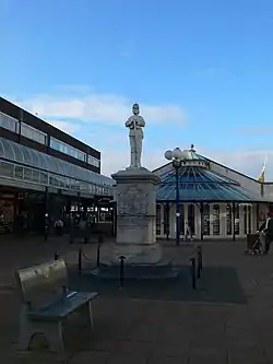 Following the Boer Wars, a committee was formed to organise a memorial statue. The sum of £125 was raised by a door-to-door collection, with money coming from 700 subscribers. The sculptor was Herbert Chatham of Rhyl, and the memorial was built by G. Hamlett and Sons. It was unveiled on 24 October 1906 by General Ridley, who had served in the war. The memorial was originally sited next to the Brunner Guildhall in High Street, and was moved into the shopping precinct in the 1960s.[1]
