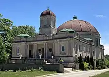The cemetery was established by members of Chicago's Czech community in 1877.[2] The community had been outraged when a Czech Catholic woman named Marie Silhanek was denied burial at several Catholic cemeteries in Chicago because she supposedly never made her Easter Duty (going to confession and Holy Communion at least once during the Easter season), which is incumbent on all Catholics, even today.[3] In response, the Czechs purchased land in what was then Jefferson Township to create a cemetery that they themselves could control.[4] The original plot of land was 50 acres (200,000 m2). Over the years, the cemetery expanded to 126 acres (0.51 km2).[5]